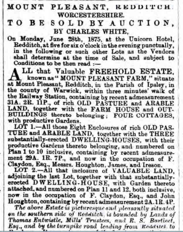 For Sale The Ipsley Estate comprising of Arrodale Farm, The Lodge Farm, Greenlands Farm, Oakenshaw Farm, Woodrow Farm and Crabtree Farm – To Sell by Auction