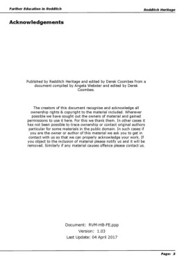 Published by Redditch Heritage and edited by Derek Coombes from a
