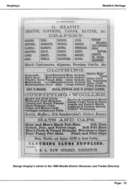 Heapheys Redditch Heritage George Heaphy’s advert in the 1884 Needle District Alamanac and Trades Directory Page: 13