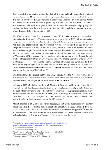 In• January•1872• Mr• Smith,• the• Redditch• Medical• Officer• of• Health,• wrote•to• the• King’s