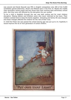 In 1918 the Fisher Act was passed the school leaving age was put up to 14; hopefully it
