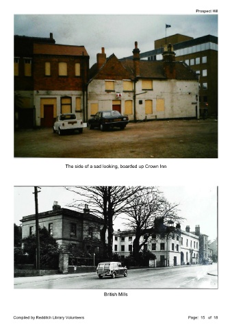 Prospect Hill The side of a sad looking, boarded up Crown Inn British Mills Compiled by Redditch Library Volunteers Page: 15 of 18