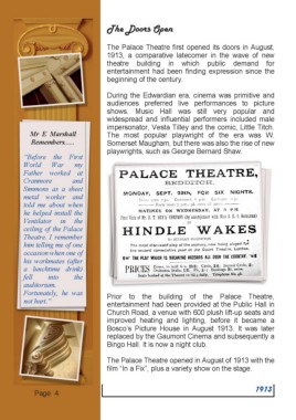 The Palace Theatre opened in August of 1913 with the