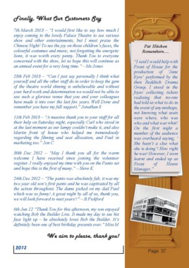 an annual event for a very long time.” – Ms Jones Front of House for the