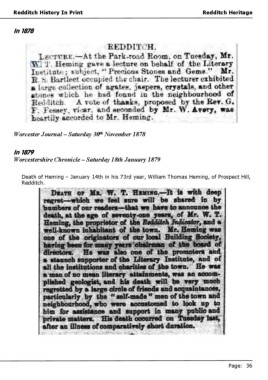 Death of Heming – January 14th in his 73rd year, William Thomas Heming, of Prospect Hill,
