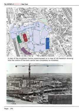 The HISTORY of REDDITCH New Town A plan of the Kingfisher Centre superimposed on a map of old Redditch showing how the centre of the town centre was completely re-modelled. Page: 146