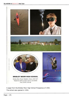 The HISTORY of REDDITCH New Town A page from the Bridely Moor High School Prospectus of 1990. The school was opened in 1952. Page: 176