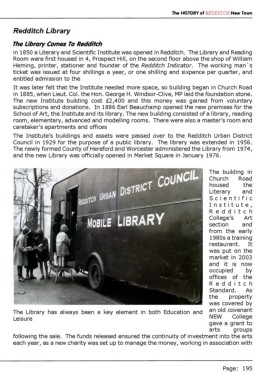 in 1850 a Literary and Scientific Institute was opened in Redditch. The Library and Reading