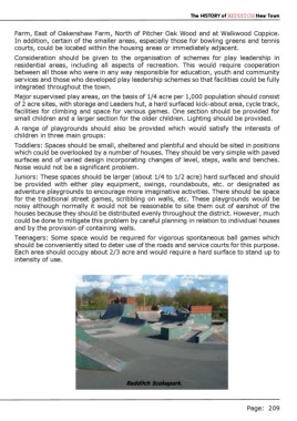 be provided with either play equipment, swings, roundabouts, etc. or designated as
