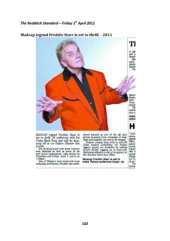 st The Redditch Standard – Friday 1 April 2011 Madcap legend Freddie Starr is set to thrill - 2011 102