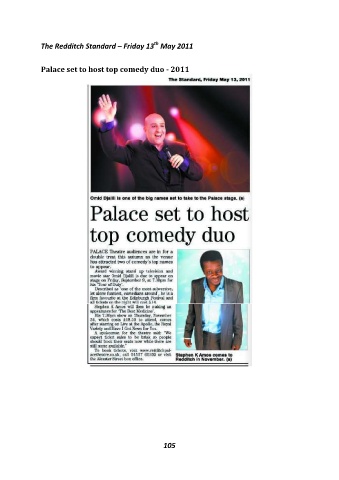 th The Redditch Standard – Friday 13 May 2011 Palace set to host top comedy duo - 2011 105