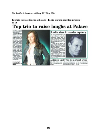 th The Redditch Standard – Friday 20 May 2011 Top trio to raise laughs at Palace – Leslie stars in murder mystery - 2011 106