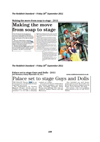 th The Redditch Standard – Friday 30 September 2011 Making the move from soap to stage - 2011 th The Redditch Standard – Friday 30 September 2011 Palace set to stage Guys and Dolls - 2011 109