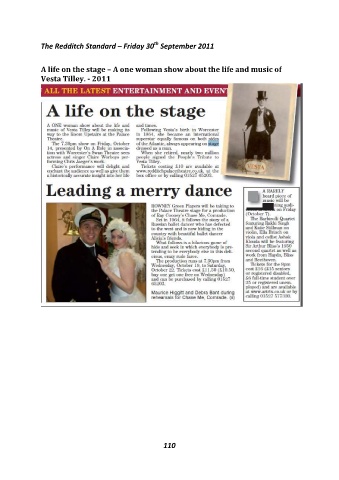 th The Redditch Standard – Friday 30 September 2011 A life on the stage – A one woman show about the life and music of Vesta Tilley. - 2011 110