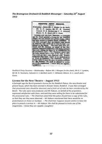 A fortnight ago the Bench granted a license for the Redditch Palace, the new theatre and
