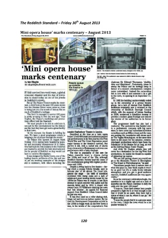 th The Redditch Standard – Friday 30 August 2013 Mini opera house’ marks centenary – August 2013 120