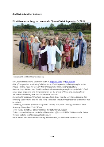 First time ever for great musical – “Jesus Christ Superstar” - 2014