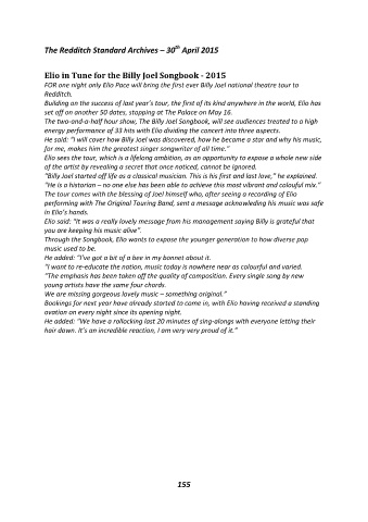FOR one night only Elio Pace will bring the first ever Billy Joel national theatre tour to