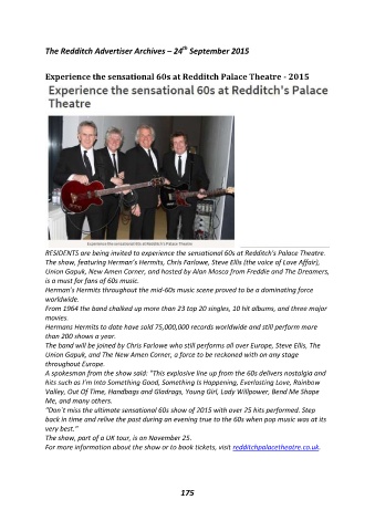 "Don`t miss the ultimate sensational 60s show of 2015 with over 25 hits performed. Step