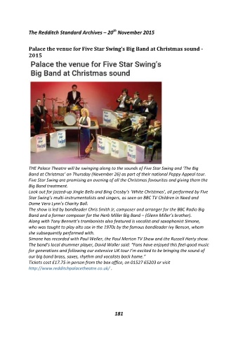 Palace the venue for Five Star Swing’s Big Band at Christmas sound -