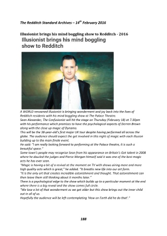 Redditch residents with his mind boggling show at The Palace Theatre.