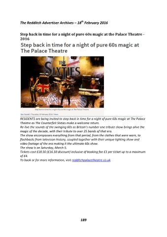 RESIDENTS are being invited to step back in time for a night of pure 60s magic at The Palace