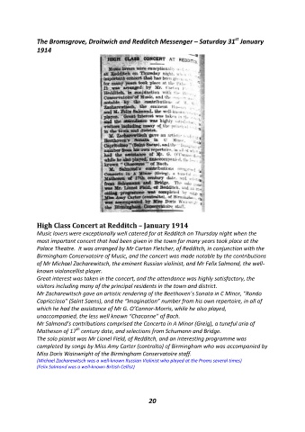 High Class Concert at Redditch – January 1914
