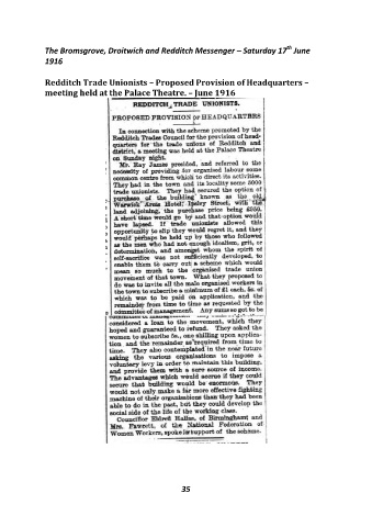 th The Bromsgrove, Droitwich and Redditch Messenger – Saturday 17 June 1916 Redditch Trade Unionists – Proposed Provision of Headquarters – meeting held at the Palace Theatre. – June 1916 35