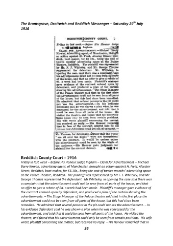 at the Palace Theatre, Redditch. The plaintiff was represented by Mr F. J. Whiteley, and Mr