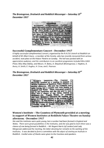 Successful Complementary Concert – December 1917