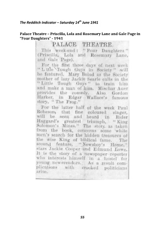 th The Redditch Indicator – Saturday 14 June 1941 Palace Theatre – Priscilla, Lola and Rosemary Lane and Gale Page in “Four Daughters” - 1941 55