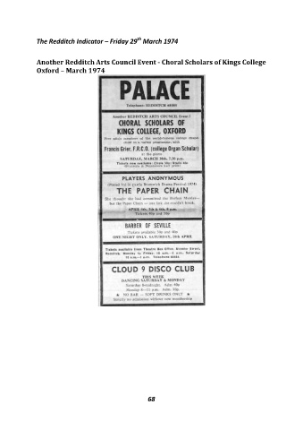 th The Redditch Indicator – Friday 29 March 1974 Another Redditch Arts Council Event - Choral Scholars of Kings College Oxford – March 1974 68