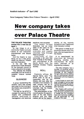 th Redditch Indicator – 8 April 1982 New Company Takes Over Palace Theatre – April 1982 71