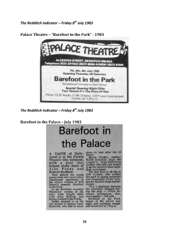th The Redditch Indicator – Friday 8 July 1983 Palace Theatre – “Barefoot in the Park” - 1983 th The Redditch Indicator – Friday 8 July 1983 Barefoot in the Palace – July 1983 75