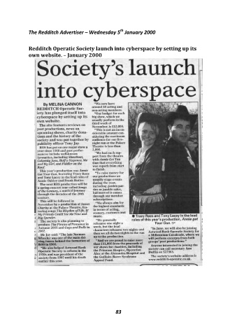 th The Redditch Advertiser – Wednesday 5 January 2000 Redditch Operatic Society launch into cyberspace by setting up its own website. – January 2000 83