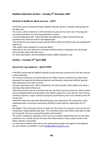 AFTER the success of Jekyll and Hyde, Redditch Operatic Society is already making plans for