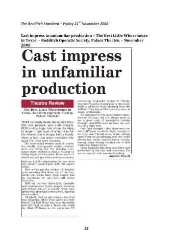 st The Redditch Standard – Friday 21 November 2008 Cast impress in unfamiliar production – The Best Little Whorehouse in Texas. – Redditch Operatic Society, Palace Theatre. – November 2008 93