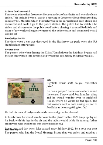 stolen. This included when I was in a meeting at Grosvenor House being told my