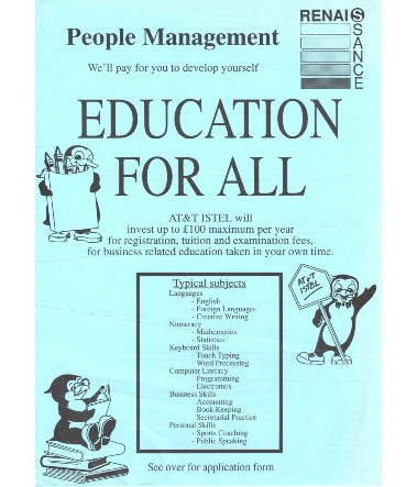 Leaflet offering all employees finacial support to undertakw personal development training.