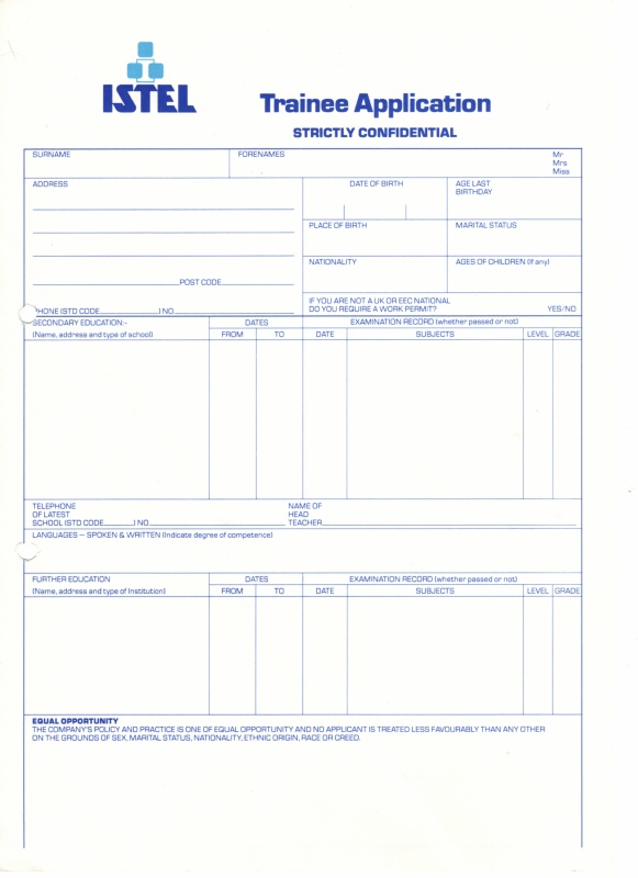 Sample of a typical form from the HR department