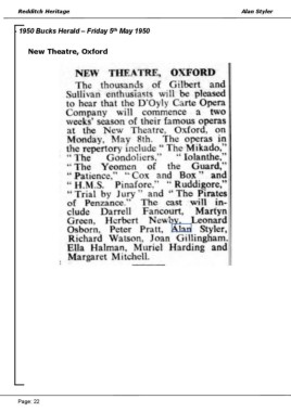 Redditch Heritage Alan Styler th - 1950 Bucks Herald – Friday 5 May 1950 New Theatre, Oxford Page: 22