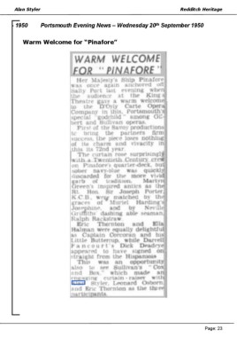 Alan Styler Redditch Heritage th - 1950 Portsmouth Evening News – Wednesday 20 September 1950 Warm Welcome for “Pinafore” Page: 23