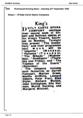 Redditch Heritage Alan Styler rd - 1950 Portsmouth Evening News – Saturday 23 September 1950 King’s – D’Oyly Carte Opera Company Page: 24