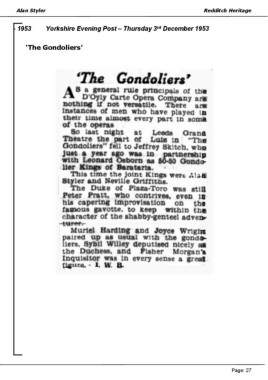 Alan Styler Redditch Heritage rd - 1953 Yorkshire Evening Post – Thursday 3 December 1953 ‘The Gondoliers’ Page: 27