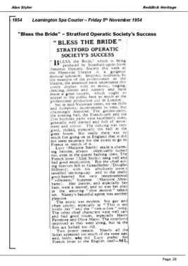 Alan Styler Redditch Heritage th - 1954 Leamington Spa Courier – Friday 5 November 1954 “Bless the Bride” – Stratford Operatic Society’s Success Page: 29