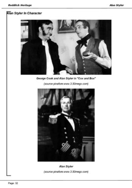 Redditch Heritage Alan Styler Alan Styler In Character George Cook and Alan Styler in “Cox and Box” (source pinafore.www.3.50megs.com) Alan Styler (source pinafore.www.3.50megs.com) Page: 32