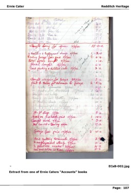 Redditch Heritageedditch Heritage E Ernie Caterrnie Cater R - ECsB-002.jpg Extract from one of Ernie Caters “Accounts” books P Page: 107age: 107