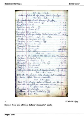 Redditch Heritageedditch Heritage E R Ernie Caterrnie Cater - ECsB-003.jpg Extract from one of Ernie Caters “Accounts” books P Page: 108age: 108