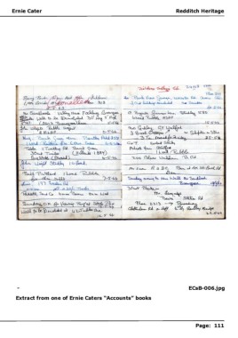 Redditch Heritageedditch Heritage E Ernie Caterrnie Cater R - ECsB-006.jpg Extract from one of Ernie Caters “Accounts” books P Page: 111age: 111