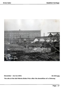 Redditch Heritageedditch Heritage E Ernie Caterrnie Cater R December - 22/12/1951 EC-053.jpg The site at the Salt Works Stoke Prior after the demolition of a Chimney P Page: 17age: 17